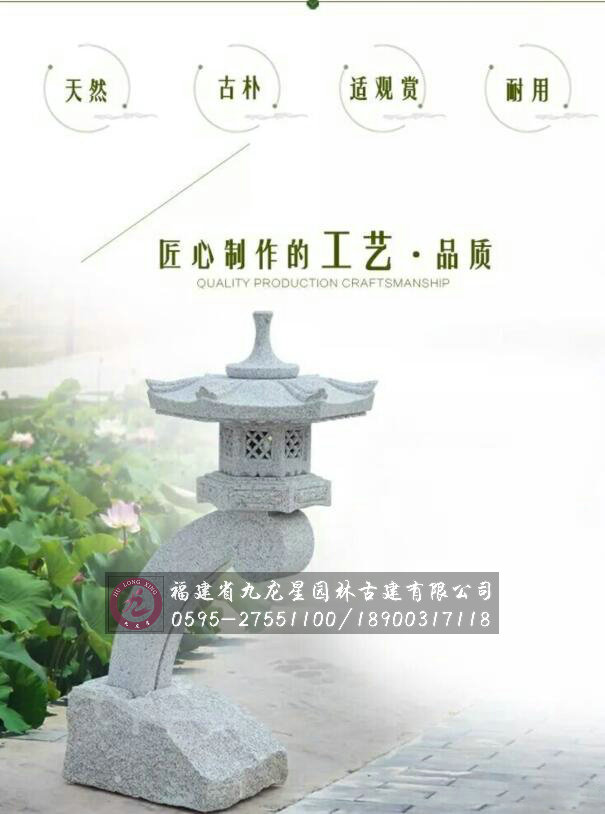 石燈籠被用于園林,庭院的裝飾始于十六世紀晚期的安土桃山時代,當時由于茶道的大發展,石燈籠常被作為茶室的一種露天裝飾物而廣泛進入庭院裝飾,隨著,石燈籠用途的改變,石燈籠的樣式也就更加多樣化了,例如出現了三腳或四腳的雪見燈籠,同時對竿和笠的部分也給予新的設計,石燈籠的樣式由模仿進入創新,日本的石燈籠除了少量用于寺院神社以外,大多數的石燈籠是用于庭院、園林裝飾使用。