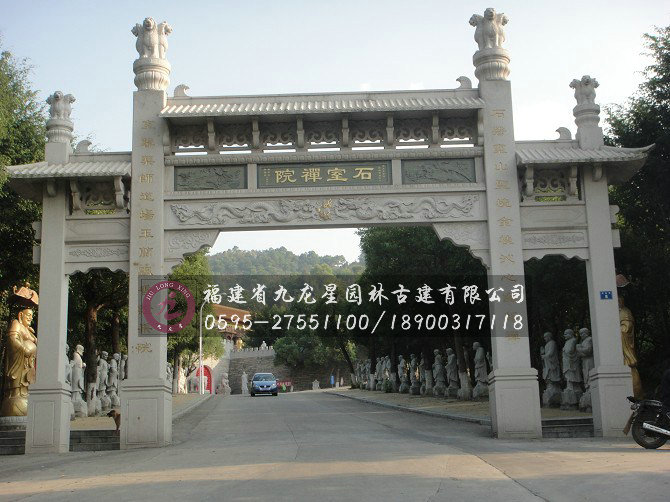 石雕牌坊即石頭修建的牌坊,是一種裝飾建筑物,也是雕刻藝術的一種。常見于古代陵園,如北京明代陵墓外面的大紅門前,有石牌坊一座,整個牌坊為五間六柱十一樓,結構勻稱和諧,造型美觀大方。現代石牌坊常用于村鎮入口,寺廟景區入口等。主要作為標志性的裝飾建筑物,在設計上也沒有古建石雕牌坊那么講究。