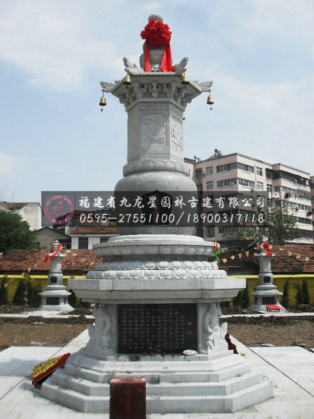 石雕佛塔梵文譯名是窣堵波,簡稱石塔。在漢代時傳入中國與中國本土建筑相結合形成了中國的石塔這種建筑形式。隨著佛教在東方的傳播,窣堵坡與中土的重樓結合后,發(fā)展出了石塔這種極具東方特色的傳統(tǒng)建筑形式。