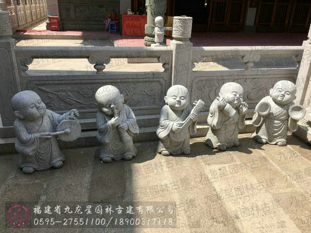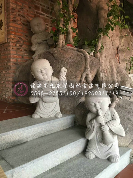 萌翻看客的一組小沙彌石雕像