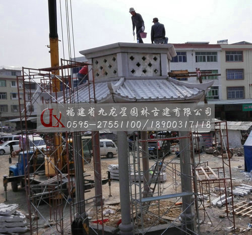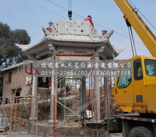 九龍星園林古建石材六角亭石亭子安裝現場