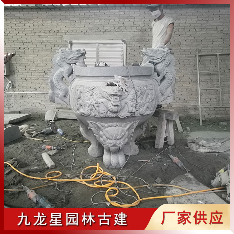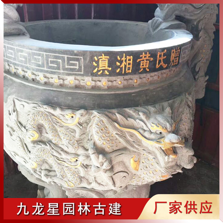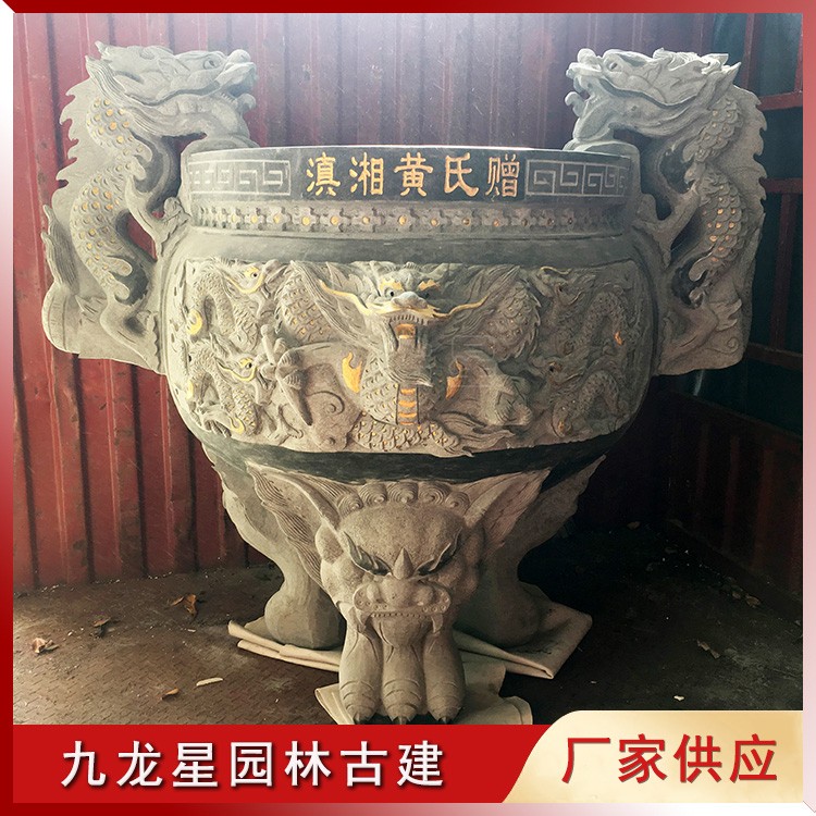 香爐石雕 圓形九龍石雕香爐發貨 祠堂祭祖用