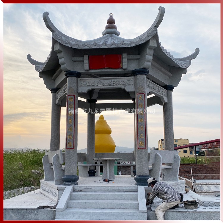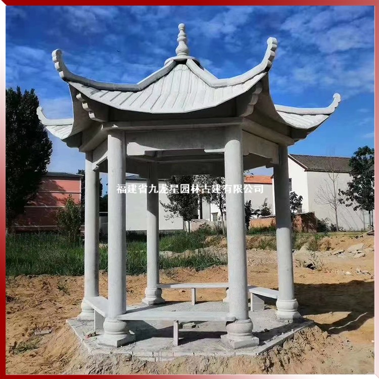 村莊入口石材涼亭 仿古石雕涼亭圖片 樣式可定制 九龍星