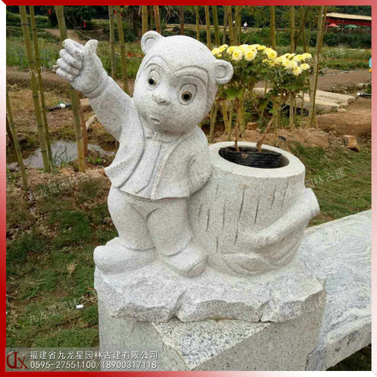 花園小品動物造型石材花缽,體量小巧,造型別致,可以美化環境,豐富園趣。成為游客在觀賞瀏覽公園時的另一道風景線。九龍星園林古建支持加工定做。