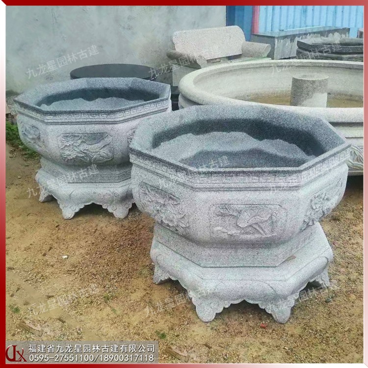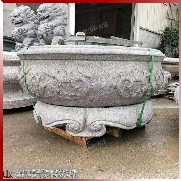 石雕做成的中式石材花缽古樸大方,古香古色,非常適合中式建筑的搭配展示,特別是這種具有現代特色的經典傳承文化的創新之作,更是讓人感到耳目一新,并且庭院中擺放這樣的精致雕刻的花缽,在一定程度上提升了整個建筑的檔次。